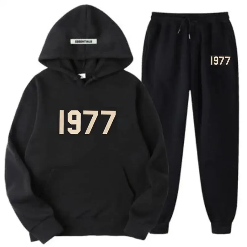 1977 hoodie Essentials represents a casual garment made as a pullover sweatshirt that includes a hood and a front pocket. Hoodies function as suitable garments for keeping oneself warm during cold days as well as serving to create a stylish and comfortable layered outfit. People can use this hoodie primarily for casual everyday attire and relaxing and physical outdoor activities.